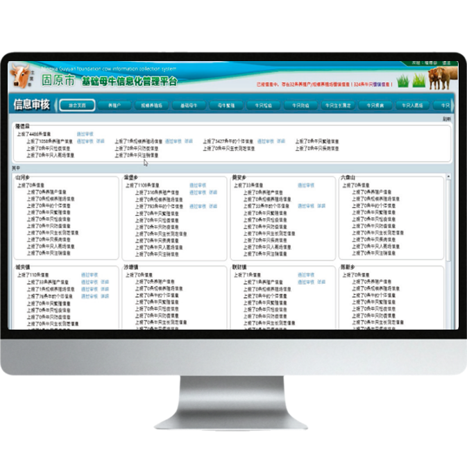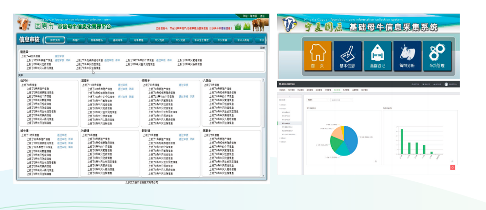 主要包括针对散户和规模化养殖母牛的基础信息采集系统;100个养殖规模场建档立卡;通过RFID电子耳边,针对母牛实行一牛一标管理;建立畜禽信息化管理,包括生长信息、繁育信息、防疫检疫信息、疾病信息等;报表统计与可视化分析等建设内容。