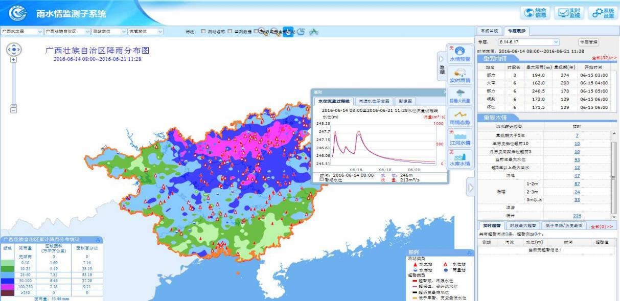 2016年9月份正式运行,整合中小河流预警预报相关所有软件,升级并整合数据库,充分利用各类气象、水情信息构建了统一的水文业务管理平台和公共服务平台。