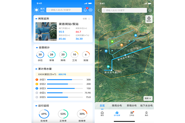 灌区助手为灌区各级管理人员提供随时随地的管理操作,实现对设备的远程控制功能,可以大幅减轻基层人员的 工作强度,同时提高管控精度,达到“移动管控、移动办公”的目的。